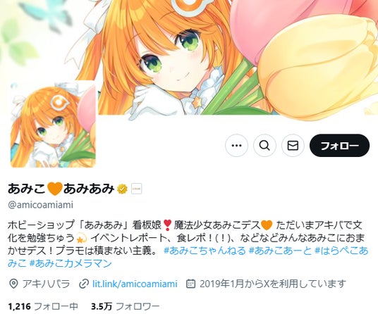 amiamiで使える35,000ポイントを抽選で1名様にプレゼント。あみこX(Twitter)が「もうすぐ35,000フォロワー フォロー&リポストキャンペーン」を開催。