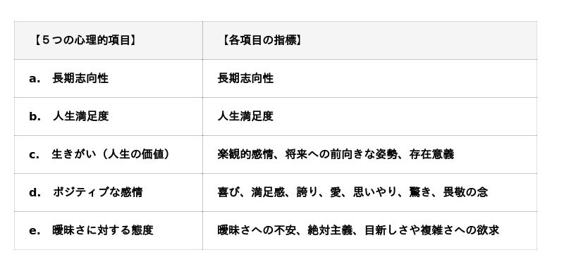 「d.ポジティブな感情」の測定において、長期株式投資家グループでは「満足感」の指標が高い数値を示し、暗号資産投資家グループでは「誇り」の指標が高い数値を示しました。このことは、特定の投資行動が特定のポジティブ感情と連動する可能性を示唆しています。