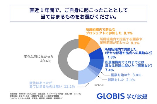 40代中間管理職の約5割が、直近1年間に仕事上で何かしらの変化を経験