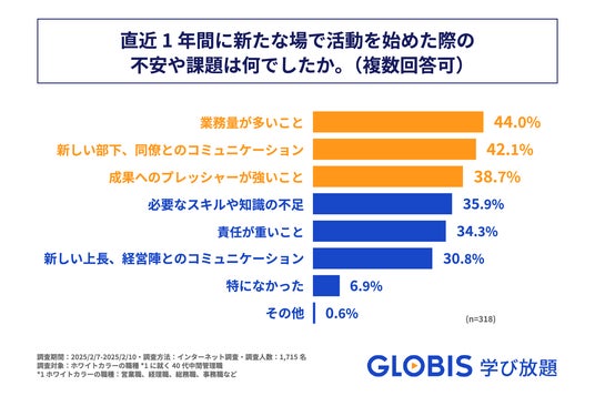 「GLOBIS 学び放題」は、異動・転職・新規プロジェクトへのアサインなどで新たな場に挑む40代の中間管理職を対象に、その不安や課題に関する実態調査を実施しました。