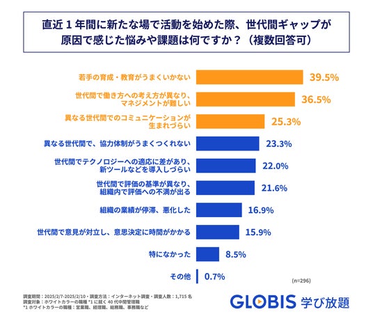 新たな場に挑戦した40代中間管理職の約9割が、「世代間ギャップ」に起因する課題に直面! GLOBIS 学び放題、「異動、転職などに伴う不安や課題」を調査