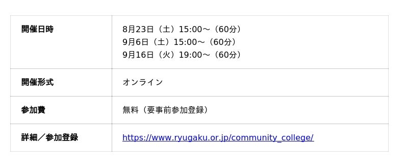 Zenken株式会社(本社:東京都港区、代表取締役社長:林 順之亮、以下 Zenken)と業務委託契約を結んでいる一般財団法人 海外留学推進協会は、2026年入学希望者を対象にした「アメリカ コミュニティカレッジ説明会」を8月及び9月にオンラインにて開催いたします。