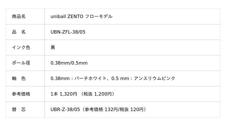 三菱鉛筆株式会社(本社:東京都品川区 社長:数原滋彦)は、「すいすい書ける水性ボールペン」の『uniball ZENTO(ユニボール ゼント)』シリーズより、日常を離れた癒やしの時間に寄り添うことをテーマにした『uniball ZENTO スタンダードモデル』(参考価格275円:税抜250円/インク色:黒/ボール径:0.38mm、0.5mm/軸色:全4色)、『uniball ZENTO フローモデル』(参考価格1,320円:税抜1,200円/インク色:黒/ボール径:0.38mm、0.5mm/軸色:全2色)の新色を2025年8月27日(水)に発売いたします。