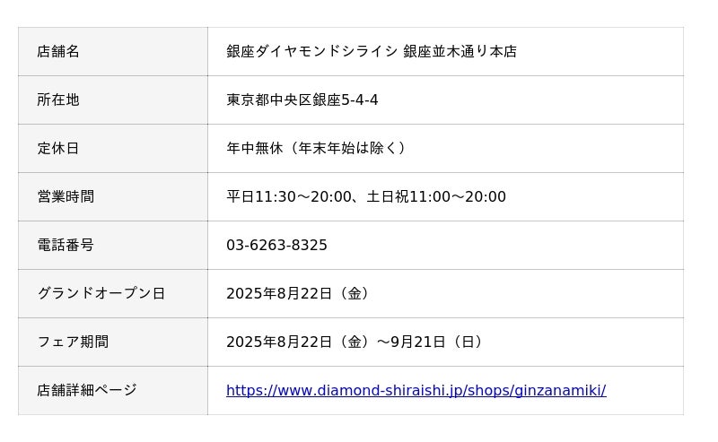 銀座ダイヤモンドシライシの大型基幹店が2025年8月22日(金)グランドオープン!「銀座ダイヤモンドシライシ 銀座並木通り本店」-オープニングフェアを開催-