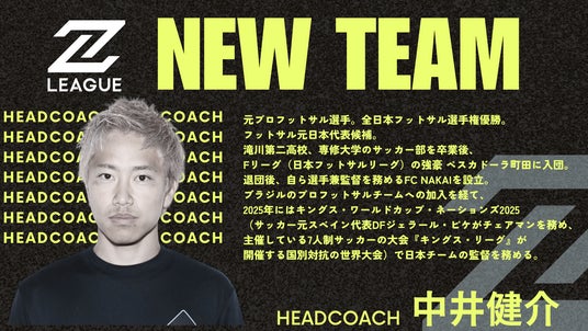このチームの監督には、元フットサル日本代表候補 / キングスリーグ日本代表監督の中井健介が就任します。