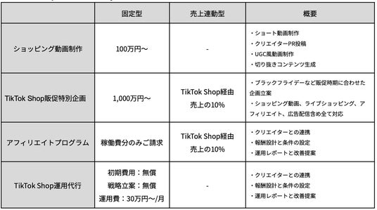 ▼TikTok Shop 支援サービス by ワンメディア 価格表