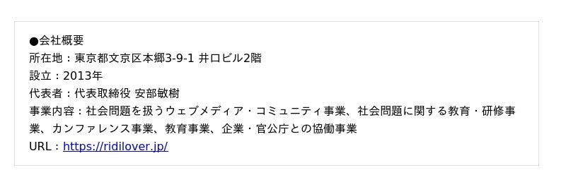 中学・高校向けのスタディツアー事業では年間10,000人以上の生徒が参加し、調査報道Webメディア「リディラバジャーナル」では『構造化』メソッドを活用して1,000本以上の記事を公開。社会課題の現場ネットワークや調査・構造化力を活かして、企業向けにはこれまで130社以上に対して越境学習や各種研修を提供、また新規事業開発支援や省庁・自治体向け調査・実証等の各種事業にも取り組んでいる。