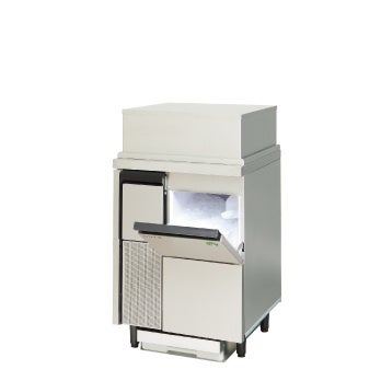 製品上部に給水タンクがついており、バケツやペットボトルなどで簡単に水を入れることができるタンク式の製氷機です。従来の業務用製氷機は給水と排水の接続が必須で、給排水の設備がない場所には設置することができませんでした。しかし、タンク式製氷機なら今まで業務用製氷機の設置ができなかった場所でも、家庭用と同じ100V電源があれば業務用のハイパワーで氷を作ることができます。