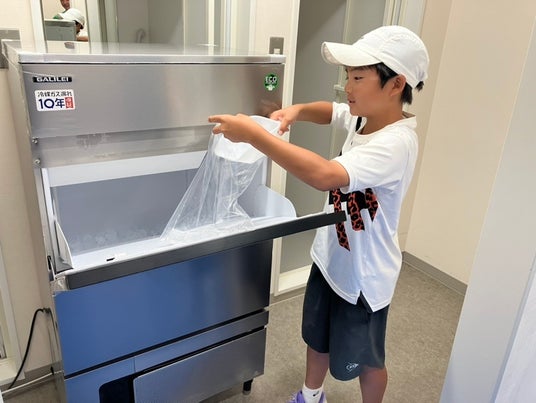 さらに今年度は給排水設備不要で稼働可能な《タンク式チップアイス製氷機》も設置予定です。従来の給排水設備の設置課題を解決し、メディカルのアイシング用など幅広く暑熱対策に貢献できる製品として提供させていただきます。
