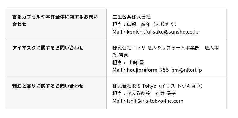 また、今回、宇宙に向けて打ち上げられる“香るカプセル入りアイマスク”の市販化も検討中であり、販売パートナー企業さまを募集しています。あわせて、“香るカプセル”の技術を活用した新商品開発に関心のある企業さまからのご相談も歓迎しております。