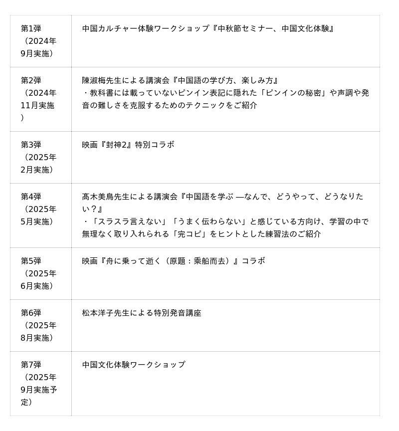 ■ハオ中国語アカデミー開校20周年記念企画 過去実施一覧