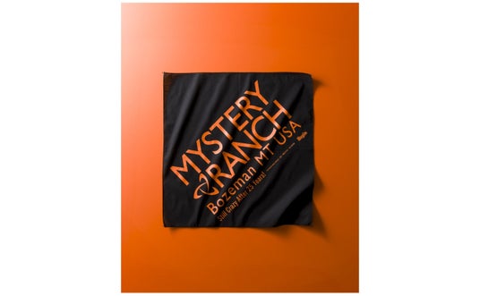 ミステリーランチとBeginがタッグを組み、ロゴを大胆にあしらった 「飾れるバンダナ」!