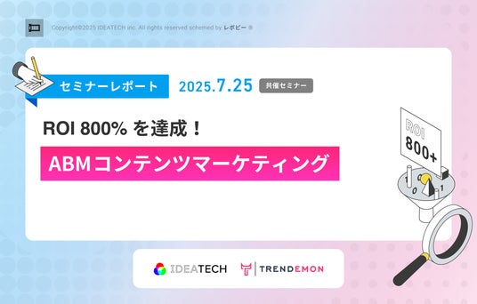 コンテンツPR・コンテンツマーケティング・コンテンツセールスを総合支援する株式会社IDEATECH(本社:東京都港区、代表取締役社長:石川友夫)と、ABM支援ツールを提供するTRENDEMON JAPAN株式会社(本社:東京都港区、代表:Halel Porat)は、2025年6月25日に共催セミナー「ROI800%を叩き出した『勝てるコンテンツマーケティング』の事例を生々しく語る会」を開催しました。
