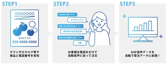 ユーザーは「名前・住所・個数」を電話で伝えるだけで注文完了。面倒な会員登録やパスワード管理は不要で、誰もが簡単に利用できます。