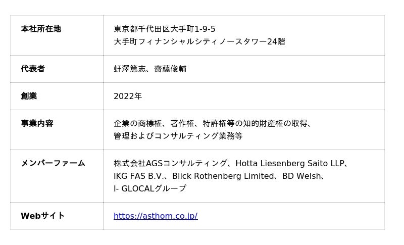 ASTHOMは、2022年12月に日本の株式会社AGSコンサルティング(本社:東京都千代田区、代表取締役会長:虷澤篤志、代表取締役社長:廣渡嘉秀)と米国のHotta Liesenberg Saito LLP(本社:Torrance CA、マネージング・パートナー:齋藤俊輔)が設立した日系企業に向けた「血の通った」サービスをご提供する日本発祥のグローバルアカウンティングネットワークです。