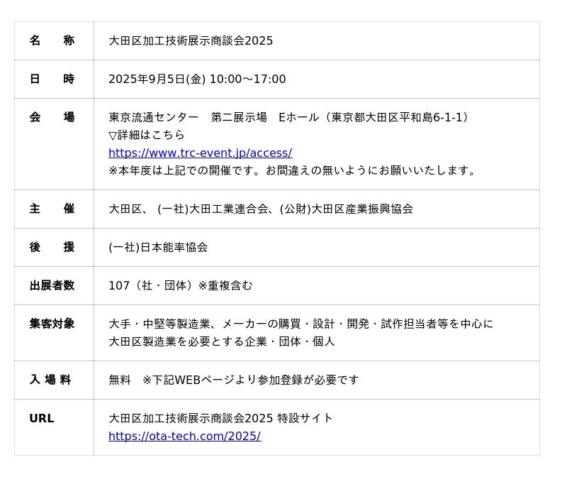 9月5日(金)「ものづくりのまち 大田区」の高度な加工技術が一堂に集結する展示会開催!