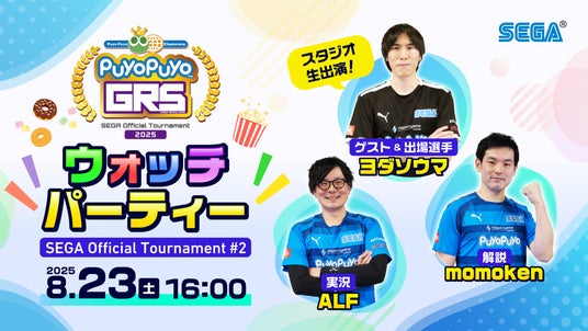 株式会社セガは、ジャパン・eスポーツ・プロライセンス認定タイトルである、対戦アクションパズルゲーム「ぷよぷよ」シリーズについて、2025年8月23日(土)にオンラインにて開催される、「Puyo Puyo Global Ranking Series 2025 SEGA Official Tournament 2」のインターネット配信情報を公開いたしました。