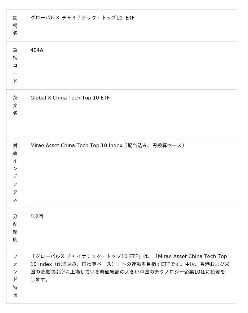 「グローバルX チャイナテック・トップ10 ETF」【404A】