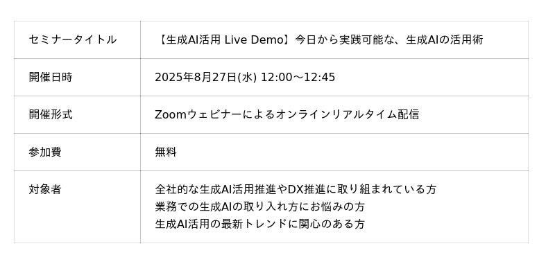 12:00~12:03:ご挨拶、登壇者のご紹介12:03~12:10:生成AI時代に必須な三大スキルとは?