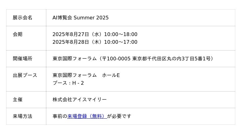 ▶︎ AI博覧会2025 Summerの詳細はこちら