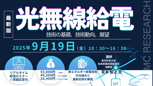 【ライブ配信/ZOOM】「光無線給電技術の基礎,技術動向,展望」セミナー開催!9月19日(金)主催:(株)シーエムシー・リサーチ