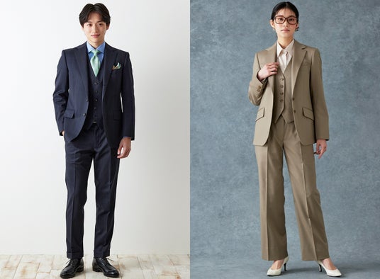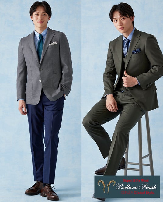 新作には耐久性と防シワ性に優れた21マイクロンと、光沢感があり艶っぽさが特徴のSuper 110'sの生地を中心にご用意しています。これからの入学式や入園式などのセレモニーイベントにもおすすめです。