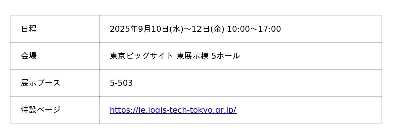 積水樹脂株式会社(本社:大阪市北区、代表取締役社長 兼 CEO 馬場浩志)は、グループ会社である積水樹脂キャップアイシステム株式会社(本社:東京都港区、代表取締役社長 上坂浩晃)およびスペーシア株式会社(本社:滋賀県湖南市、代表取締役社長 阿南啓二)と共に、2025年9月10日(水)から12日(金)まで東京ビッグサイト東展示棟で開催される「国際物流総合展2025 第4回 INNOVATION EXPO」に出展いたします。