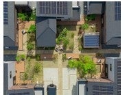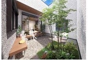 本作品では子どもを安心して遊ばせることができる中庭を街区の中心に配置しました。中庭へと続く、分譲地共有の路地は居住者同士が自然に出会える場所となり、コミュニティの形成を促進します。 一方で、一部住戸に「はなれ」の棟を設けた上、植栽を絶妙な位置に配置し、これが目隠しになって、中庭から各住戸への視線を気にせポラスガーデンヒルズ株式会社 ず暮らせるようにし、コミュニティとプライバシーの両立を果たしています。