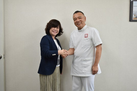 左から 株式会社オーム電機 代表取締役 新里 彩 足つぼ日本一 代表 與那嶺 茂人
