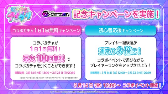 株式会社DONUTS(本社:東京都渋谷区、代表取締役:西村啓成)は、スマートフォン向けリズムゲーム「D4DJ Groovy Mix」(以下グルミク)にて、『ひみつのアイプリ』とのコラボイベント&ガチャ「ひみつのアイプリ × D4DJ -ひみつのアイプリDJ!?-」を3月14日(金)12:00より開始いたします。