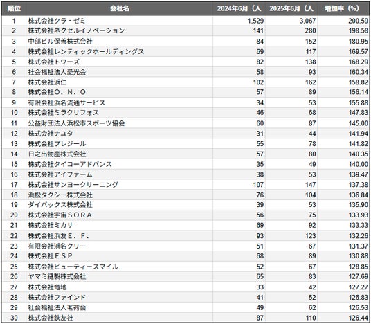 【2025年最新版】浜松市:従業員数増加率ランキングTOP30/SalesNow DBレポート