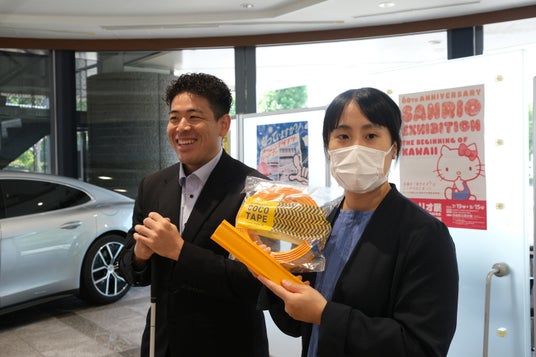 茨城県を中心にエネルギーやモビリティ、ビジネス、ライフの領域を柱に事業展開する関彰商事株式会社(本社:茨城県筑西市・つくば市、代表取締役社長:関正樹、以下「関彰商事」)つくば本社ロビーで実施した本体験会では、同社所属のゴールボール日本代表強化指定選手である山口凌河選手(男子・東京パラリンピック出場)と高橋利恵子選手(女子・東京/パリパラリンピック出場)が、「歩導くんガイドウェイ」などを体験。