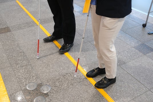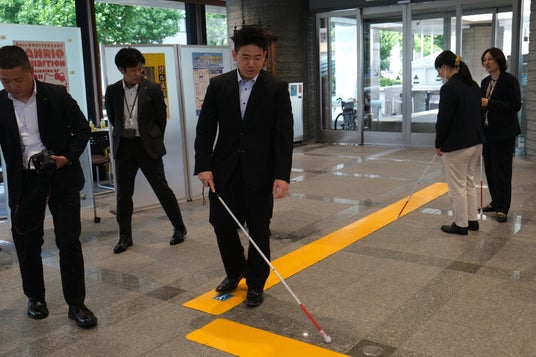 視覚障害者が迷いやすい「屋内歩行」。「歩導くんガイドウェイ」はじめ誘導アイテムをパラスポーツ選手が体験!
