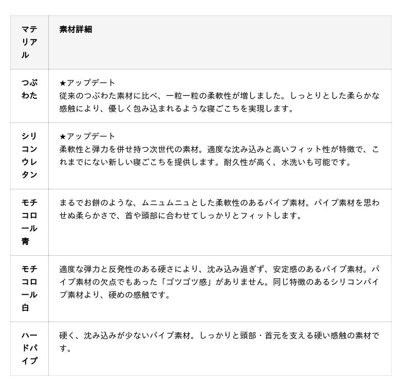 今回のアップデートでは、パーソナライズの精度向上につながる「枕の奥行き」にバリエーションを追加、使用する枕素材のアップグレードを行いました。