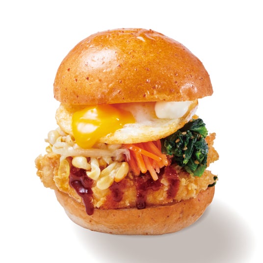 bbqオリーブチキンカフェ人気のチキンフィンガーに特製コチュジャンソースを絡め、とろりとした黄身ソースを合わせたコク深い味わい。さらに、もやし・小松菜・にんじんの3種ナムルを彩りよくサンドし、見た目にも華やかな仕上がりです。韓国ならではの“ビビン(混ぜる)”の楽しさを、バーガーで楽しめる秋限定メニューです。