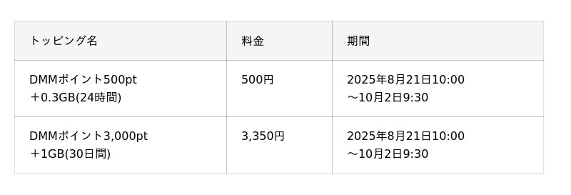 KDDI、沖縄セルラーは2025年8月21日から、povo2.0の期間限定トッピングとして、「DMMポイント」とpovo2.0のデータがセットになったトッピングを提供します。