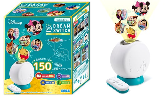 株式会社セガ フェイブ(本社:東京都品川区、代表取締役社長執行役員:杉野行雄、以下セガ フェイブ)は、おやすみ前の親子時間を彩る「ドリームスイッチ」シリーズ最多のコンテンツ数を備えた『ドリームスイッチ DXセット ディズニー&ピクサーキャラクター』(希望小売価格:16,280円/税込)を2025年10月23日(木)に発売することを決定しました。