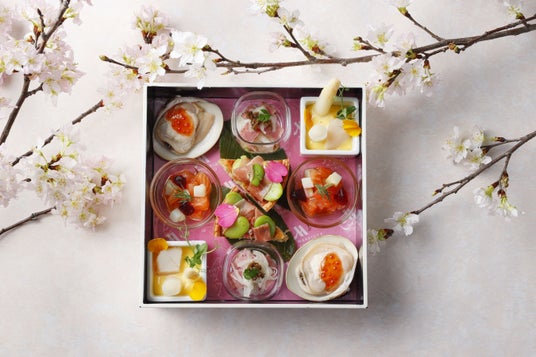 サワラやアスパラガス、いちごなどの春食材をふんだんに使用したお重スタイルの特別なランチメニュー。心地よい春の風を感じられる御殿山庭園の豊かな緑を望む屋外テラス席で愉しむ料理の数々を、各種ドリンクのフリーフローと合わせてご堪能ください。