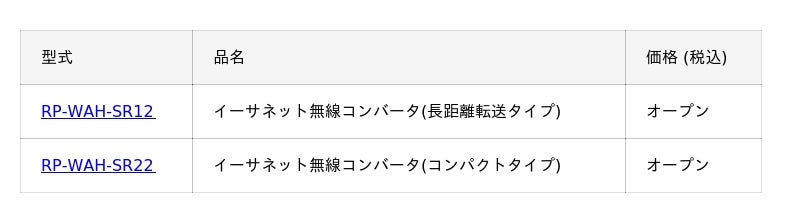 サブギガ帯を利用して最大1kmのイーサネット長距離無線転送を実現イーサネット無線コンバータ「RP-WAH-SR12/RP-WAH-SR22」新発売