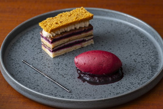 ・小布施産栗のマジョレーヌ カシスアイス 甘酒のメレンゲと共に