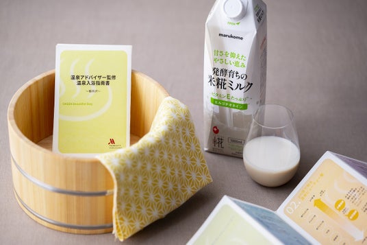 「プラス糀 米糀ミルク」「温泉入浴指南書」 イメージ