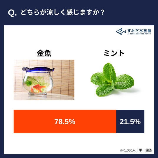 近年の記録的猛暑を背景に、「涼」をどう取り入れるかは、現代人にとって切実なテーマとなっています。そんな中私たちが注目するのは、江戸時代から現代にいたるまで視覚的な涼を届けてきた存在――「金魚」です。涼を感じる夏の風物詩として、暮らしの中で親しまれてきた金魚の価値をいまこそ見つめ直す時ではないか。その思いをもとに1,000人を対象に調査を実施。すみだ水族館で2025年7月24日(木)~9月30日(火)の期間に開催中の特別展示「東京金魚 ~時代を泳ぐ、小さなミューズたち~」にあわせ、日本人の感性に深く根付いた「金魚」と「涼」の関係性を、データからひもとく試みです。