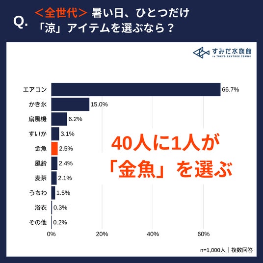 ・「暑い日に1つだけ『涼』アイテムを選ぶとしたら」:40人に1人(2.5%)が金魚を選択