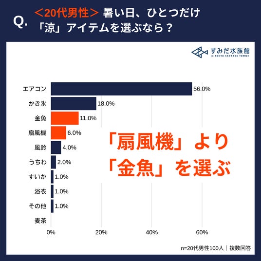 ・「涼しさを感じるために、20代男性は扇風機より金魚を選ぶ」