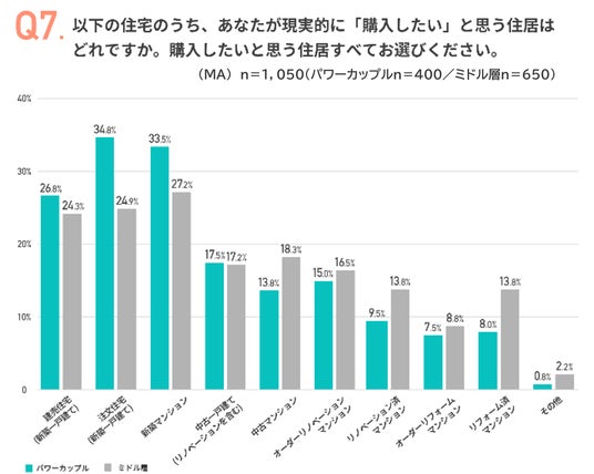 購入したいと思う住居すべてお選びください。(MA) n=1,050(パワーカップルn=400/ミドル層n=650)
