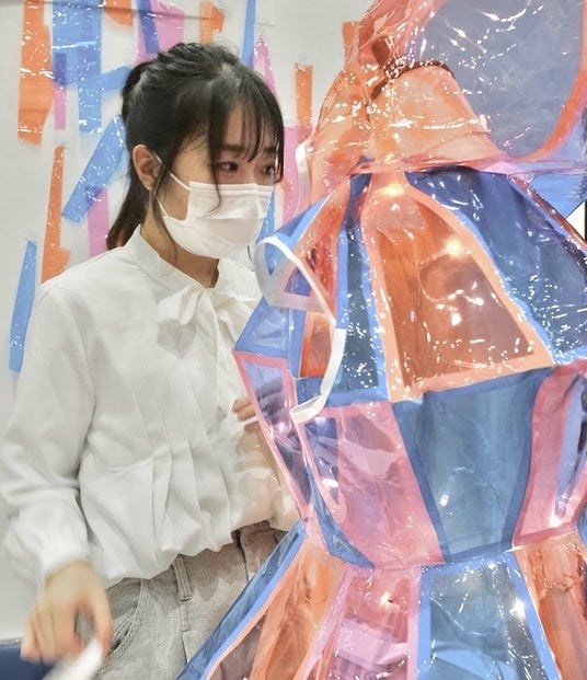 つぶグミ大学にて本企画を立案した、関東の大学に通う学生チームのメンバーと、お菓子の袋・チラシなど、普段なら洋服づくりに使わないような素材をクオリティの高い衣装へと変身させる衣装デザイナー・塩川夏子がタッグを結成。Z世代らしい自由な発想を武器に、意外性あふれる素材を大胆に取り入れたつぶグミファッションの表現に挑みました。