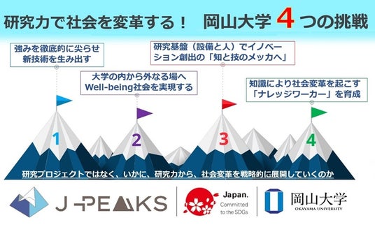 ・【岡山大学】文部科学省「地域中核・特色ある研究大学強化促進事業(J-PEAKS)」に採択~地域と地球の未来を共創し、世界の革新の中核となる研究大学:岡山大学の実現を加速とともに世界に誇れる我が国の研究大学の山脈を築く~