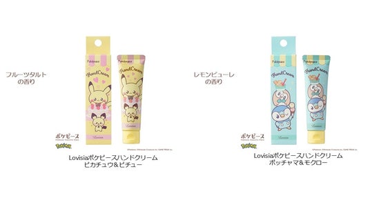 『Lovisia ポケピース ハンドクリーム』はポケピースデザインコスメの第二弾となるアイテムです。全4種類のペアデザインを採用し、ピカチュウ&ピチュー、ポッチャマ&モクロー、マホイップ&