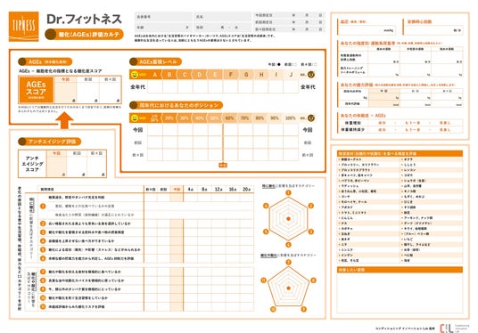 体脂肪・筋肉量をはじめメタボリック指数やサルコペニアウォッチなど、健康的なカラダづくりに欠かせない情報がつまった「体組成カルテ」、107項目の質問から嗜好性や生活リズム・食行動などを分析し、認知行動療法によるコミュニケーションで行動変容を促す「食行動評価表」に、今回の糖化度測定が加わり、より幅広いニーズに対応可能になりました。