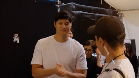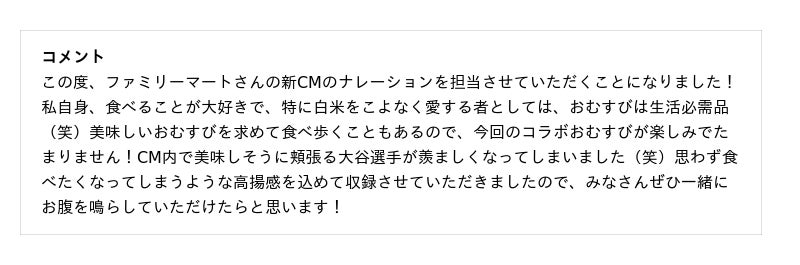 撮影では、おむすびを手に持った状態での演出が多く、「カメラ目線?」「食べない?笑うだけ?」といった演技の細かな確認を、大谷選手が笑顔でスタッフに投げかける場面も。クールな表情と、おむすびを頬張る表情のギャップ、名店とコラボした“シン”商品の本格的なおむすびの魅力にぜひご注目ください。